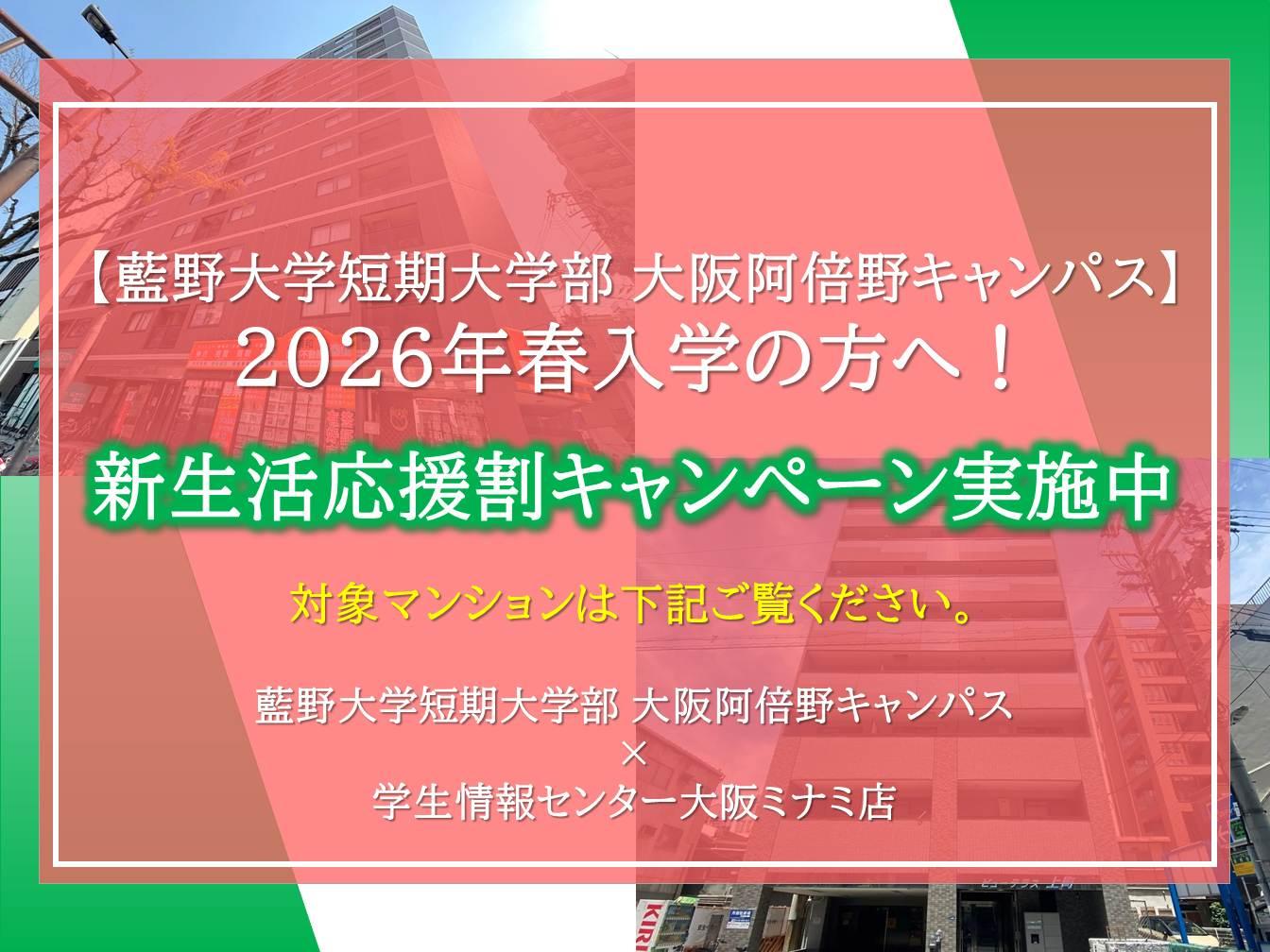 【藍野大学短期大学部 大阪阿倍野キャンパス】学生マンション新生活応援割キャンペーン実施中!