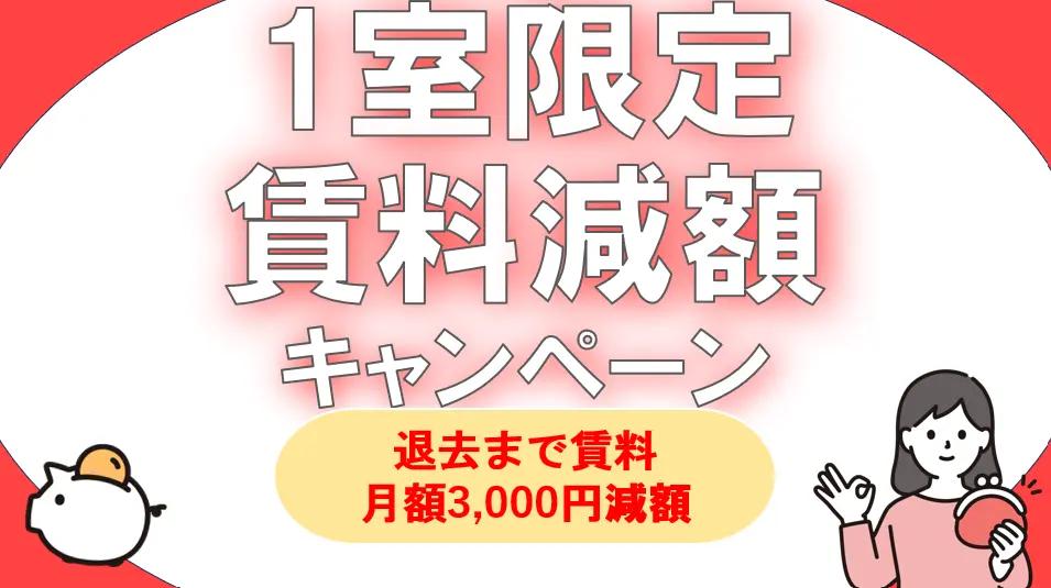 ・入居中の月額賃料3,000円減額※2F以外の居室が対象