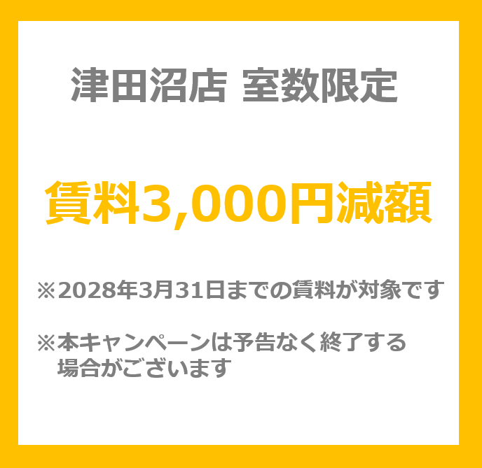 室数限定!賃料3,000円減額(2028年3月31日まで)