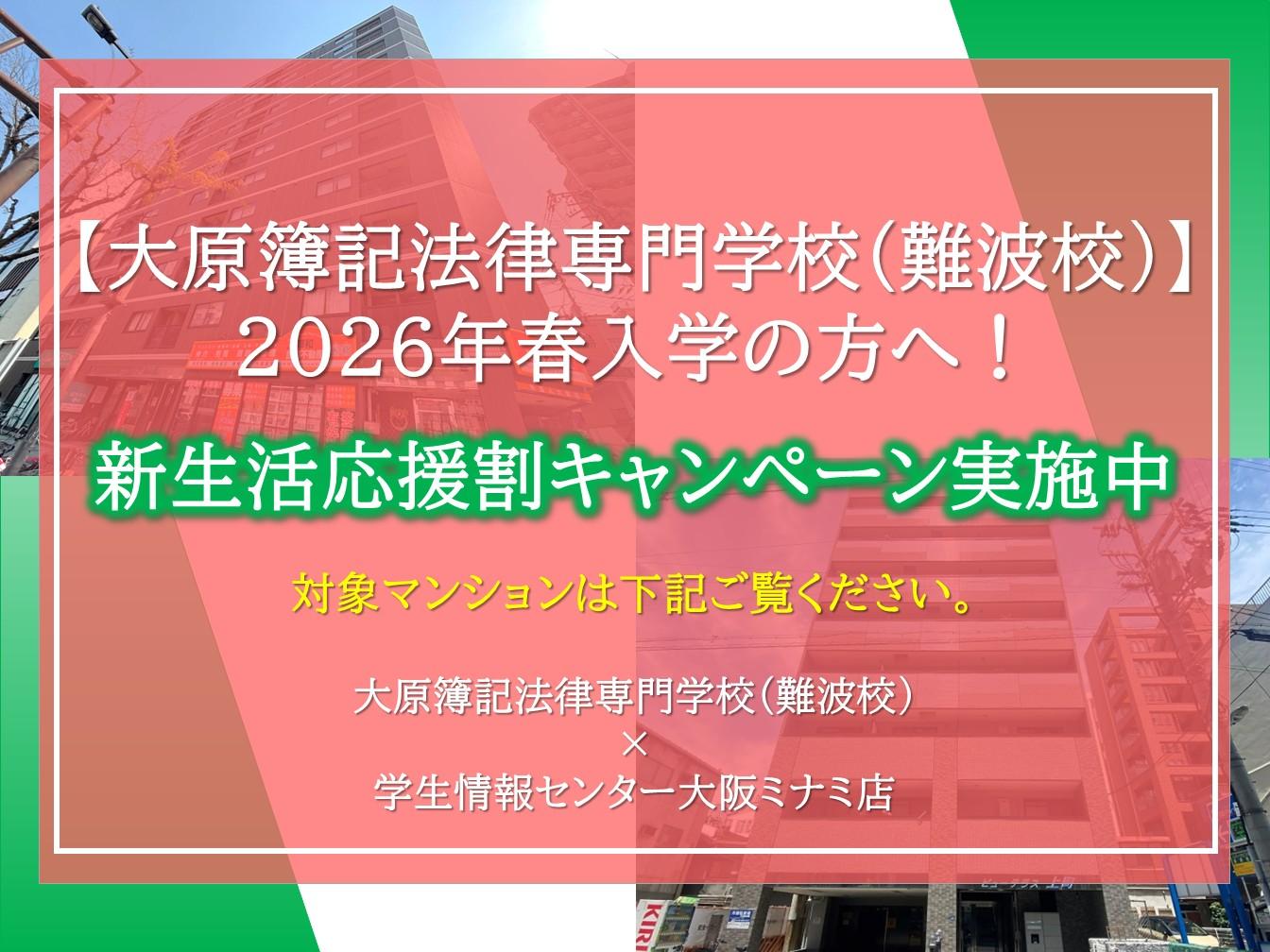 ナジックは【大原簿記法律専門学校(難波校)】と提携して一人暮らしのお部屋をご紹介させていただいております。