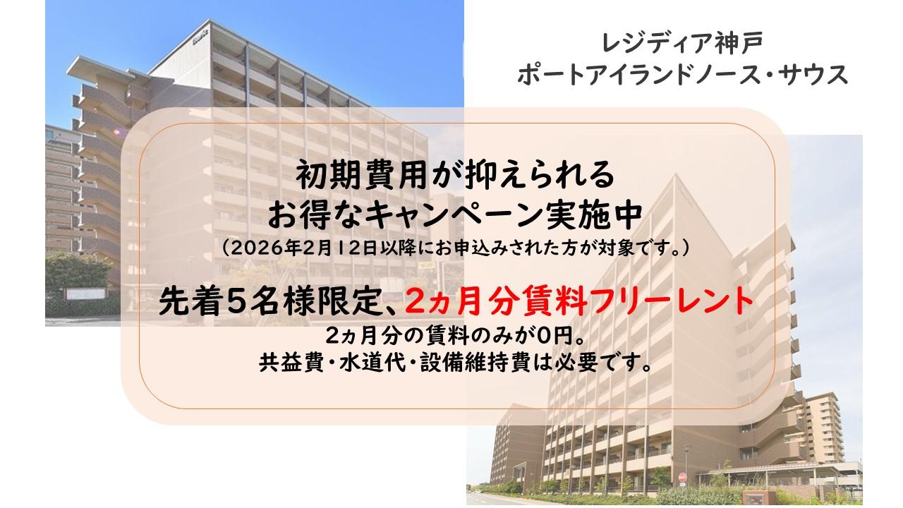【レジディア神戸ポートアイランド】初期費用が抑えられるお得なキャンペーン実施中