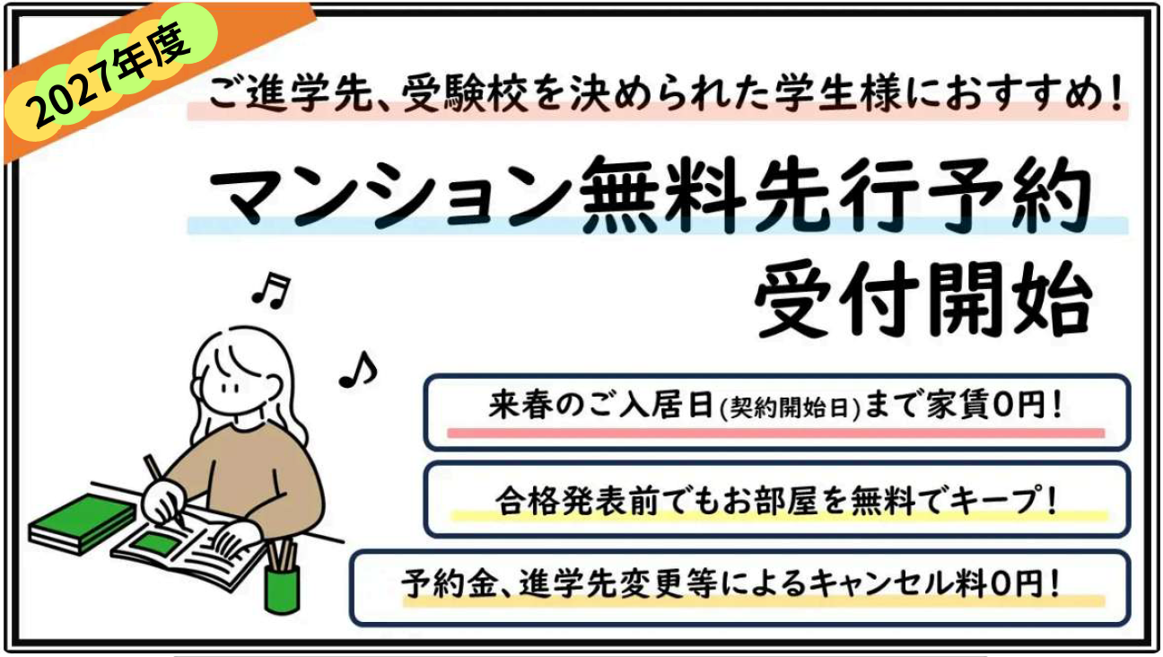 今回は2027年春入居の方向けのサービス、【マンション無料予約】のご案内です。
