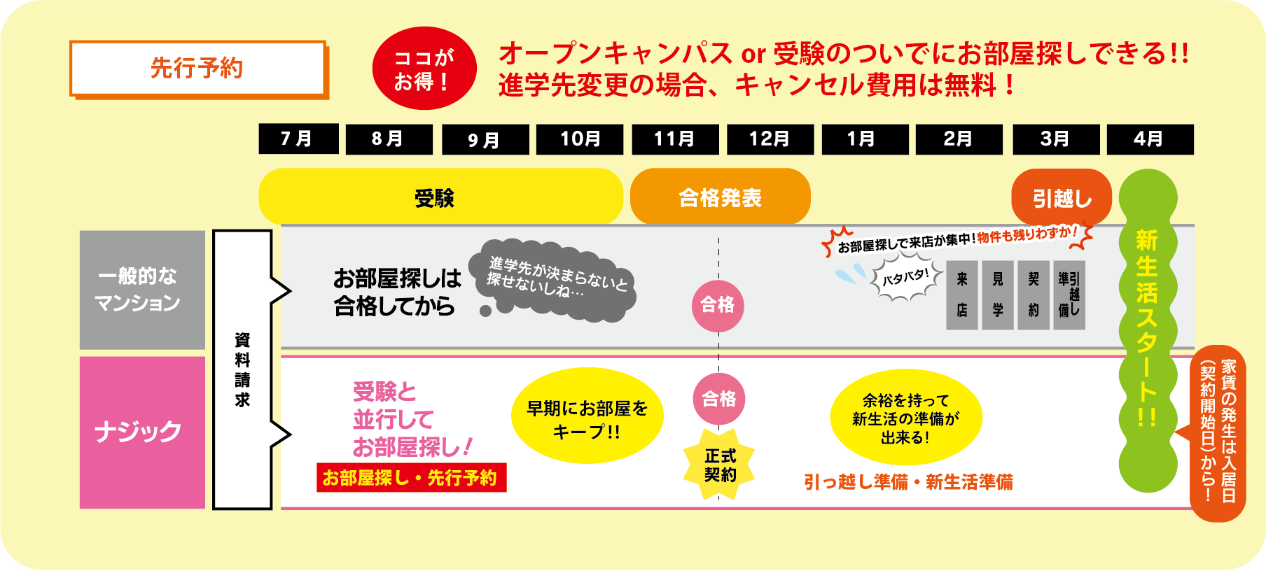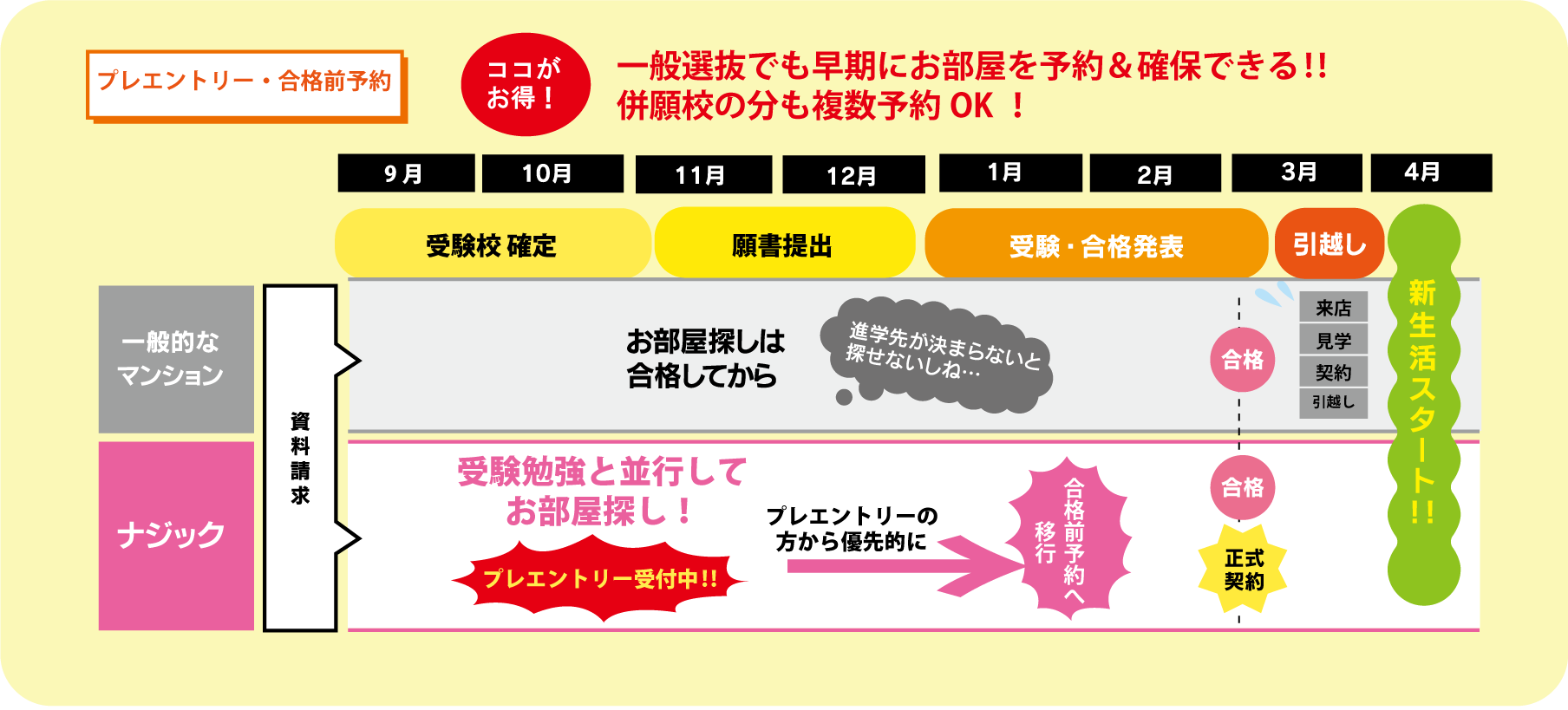 ナジックだからできる、入居時期や受験形態等、ご希望に合わせた予約サービス
