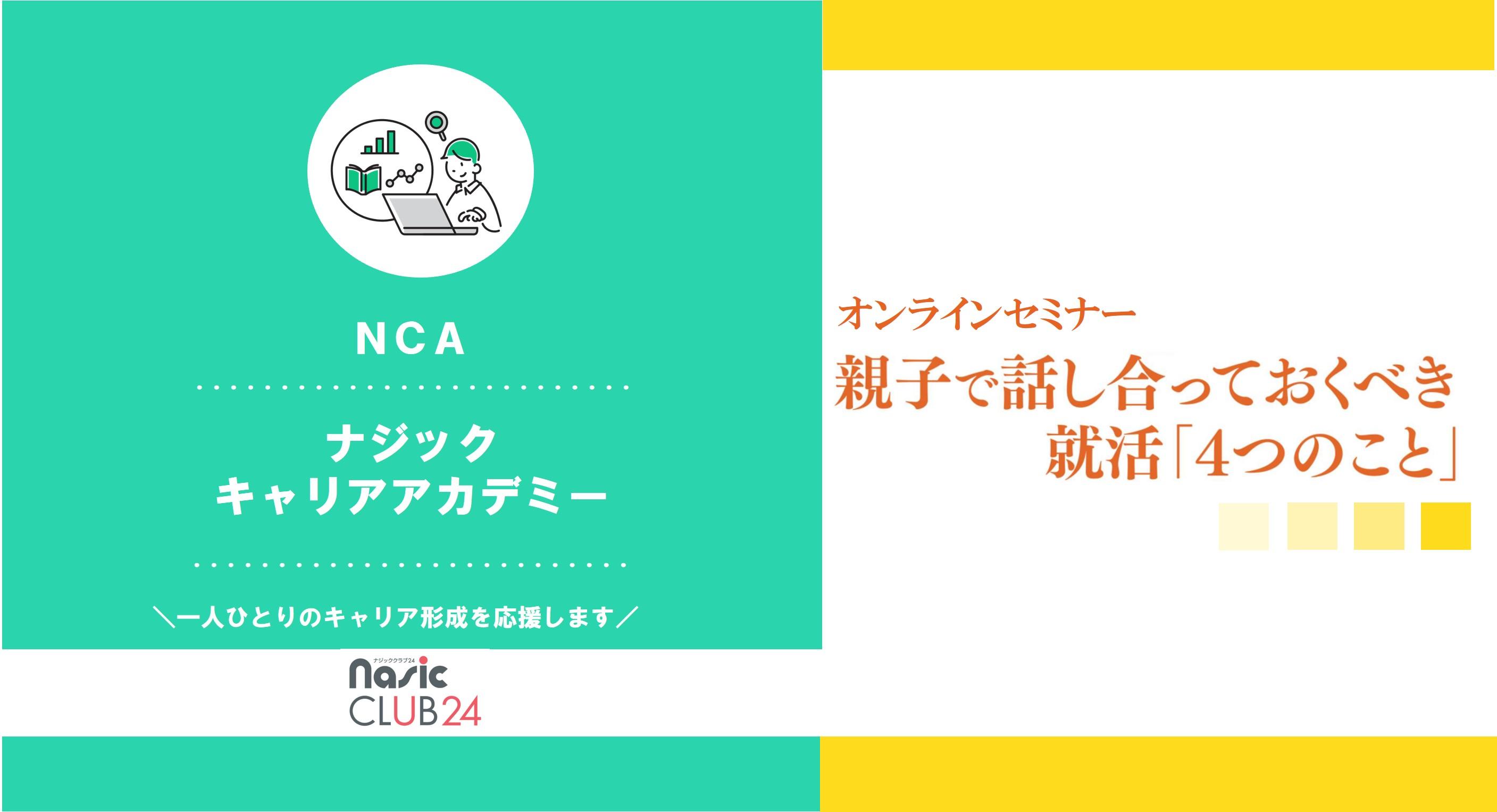 ナジックキャリアアカデミー(NCA)では親子で話し合っておくべき就活「4つのこと」と題し、オンラインセミナーを実施いたしました。