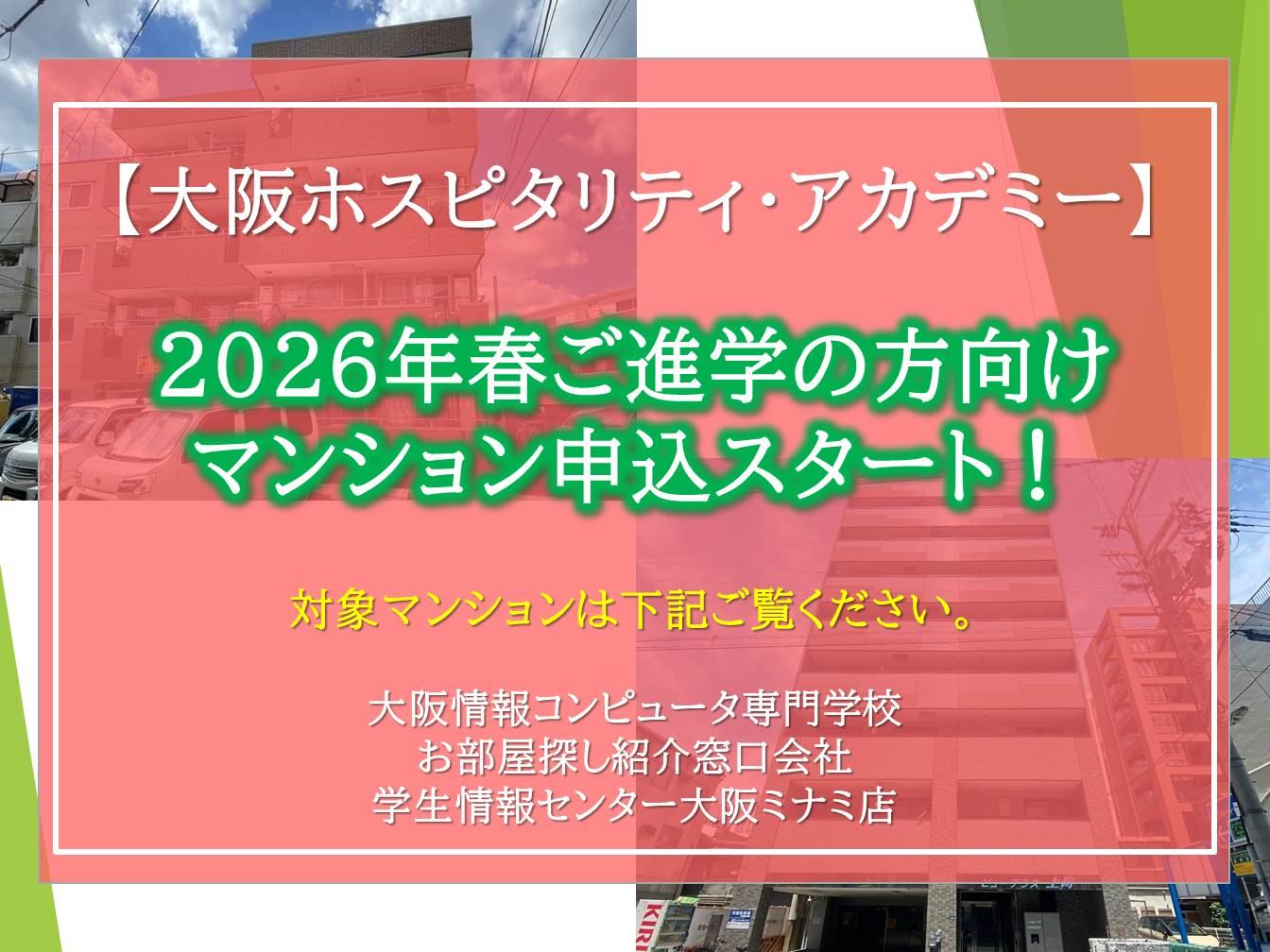 上記マンションは【専門学校大阪ホスピタリティ・アカデミー 】の学生様に人気のマンションです。