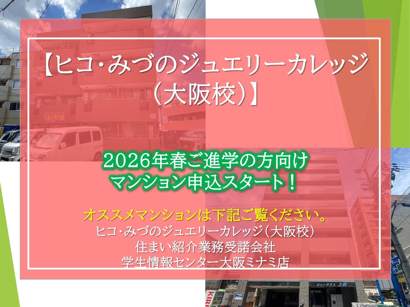 上記マンションは【ヒコ・みづのジュエリーカレッジ(大阪校) 】の学生様に人気のマンションです。
