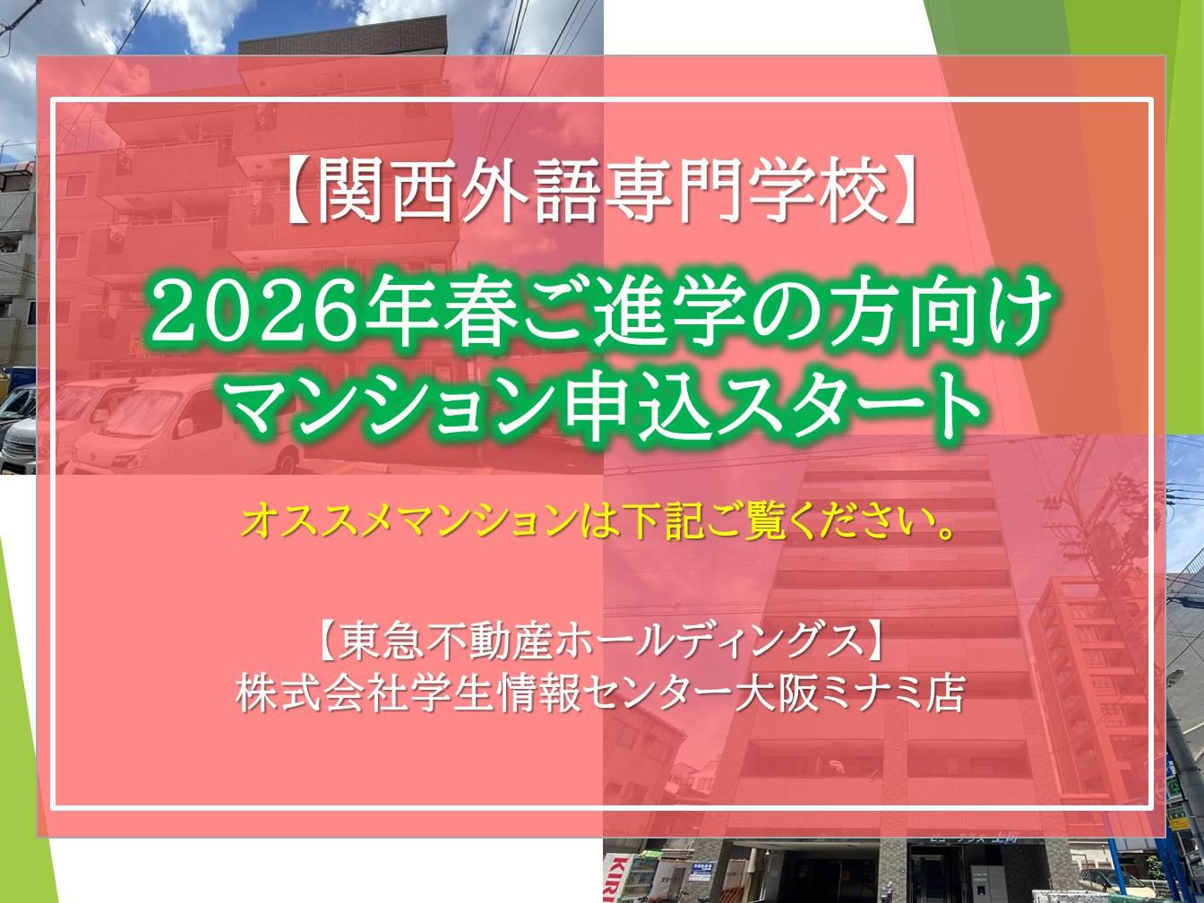 上記マンションは【関西外語専門学校】の学生様に人気のマンションです。