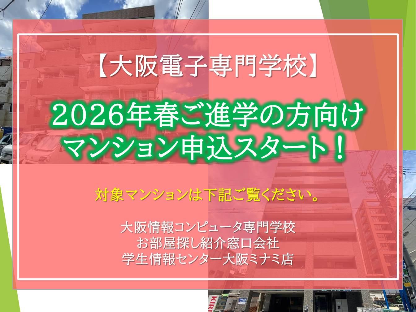 上記マンションは【大阪電子専門学校】の学生様に人気のマンションです。