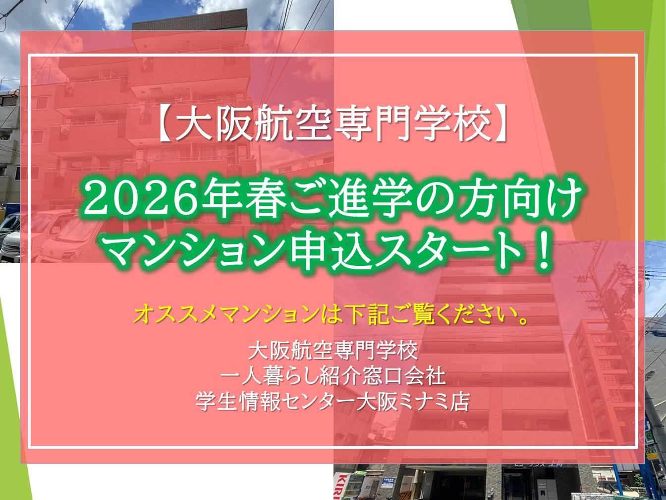 上記マンションは【大阪航空専門学校】の学生様に人気のマンションです。