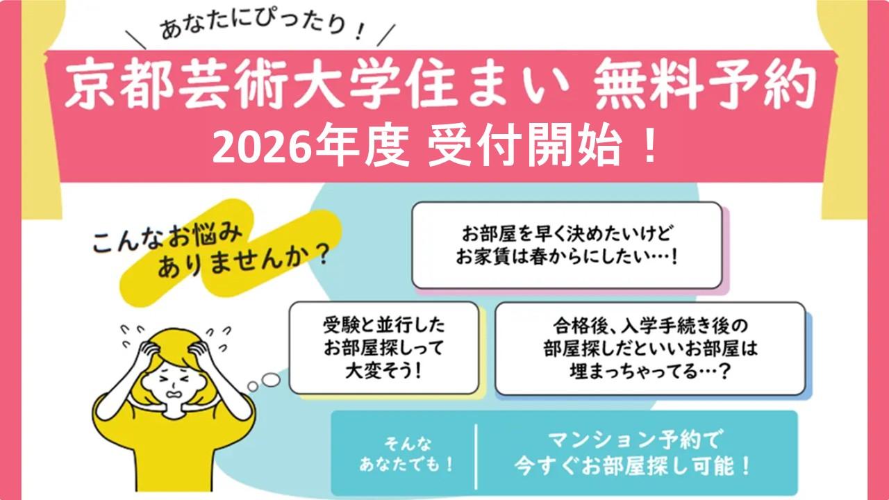 例年、京都芸術大学生のお部屋探しは早く、ご予約のみで埋まってしまうマンションもございます。