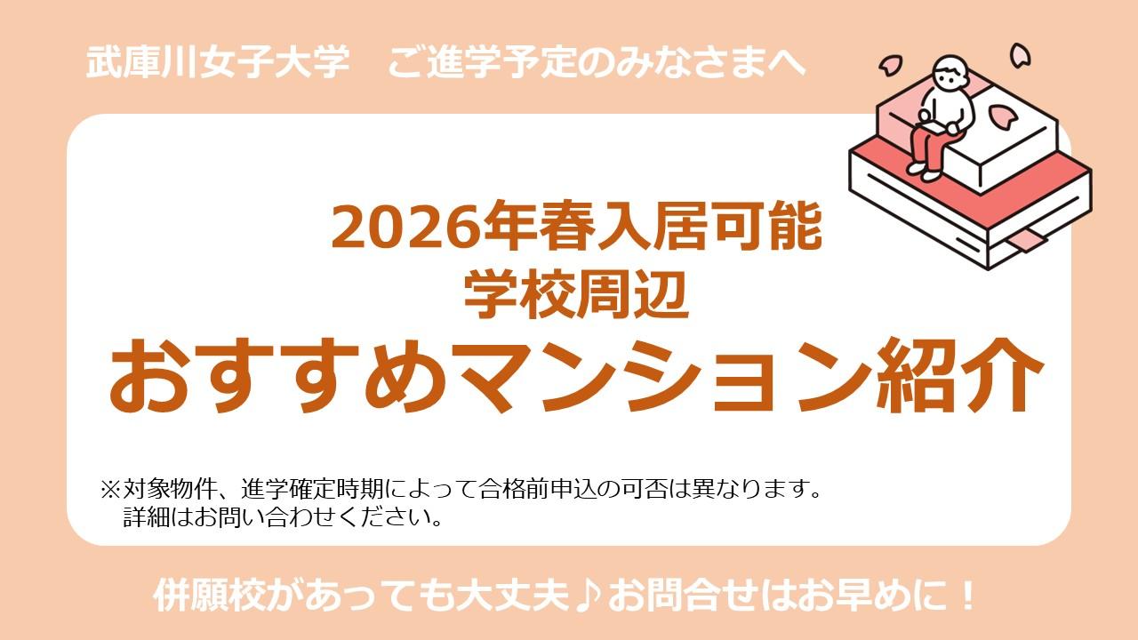 【武庫川女子大学 浜甲子園キャンパス】2026年春入居可能 おすすめ物件のご紹介