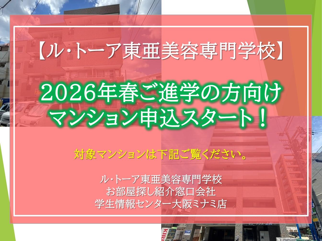 ナジックでは2026年春のご入学に合わせた"マンション申込"がスタートいたしました。