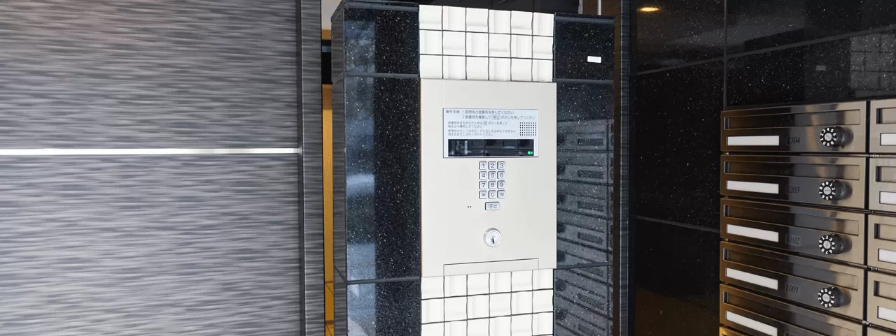 カードキーや暗証番号で入館します。外部の人は簡単に居住エリアに入ることはできないので、安心してお住まいいただけます。